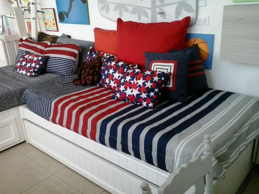 · Zona de descanso, con la cama como elemento principal. En las habitaciones juveniles también será muy útil contar con una cama supletoria, para las visitas de los amigos. Las camas nido son la elección más habitual, pero también puedes optar por una cama abatible.